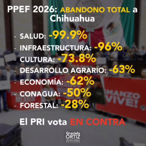 Ciudad de México.- En un golpe que resuena como un castigo injusto para un estado que impulsa la economía nacional, el Presupuesto de Egresos de la Federación (PEF) 2026 deja a Chihuahua al borde del colapso en sectores clave. La diputada federal priista Graciela Ortiz González denunció este jueves un «abandono total» que reduce drásticamente los recursos para salud, infraestructura y cultura, comparados con los niveles de 2018. Con el visto bueno de la Cámara de Diputados tras una maratónica sesión de más de 20 horas, el proyecto aprobado prioriza programas centrales del gobierno federal, pero sacrifica a entidades como Chihuahua, que aporta producción industrial y agraria vital para el país.