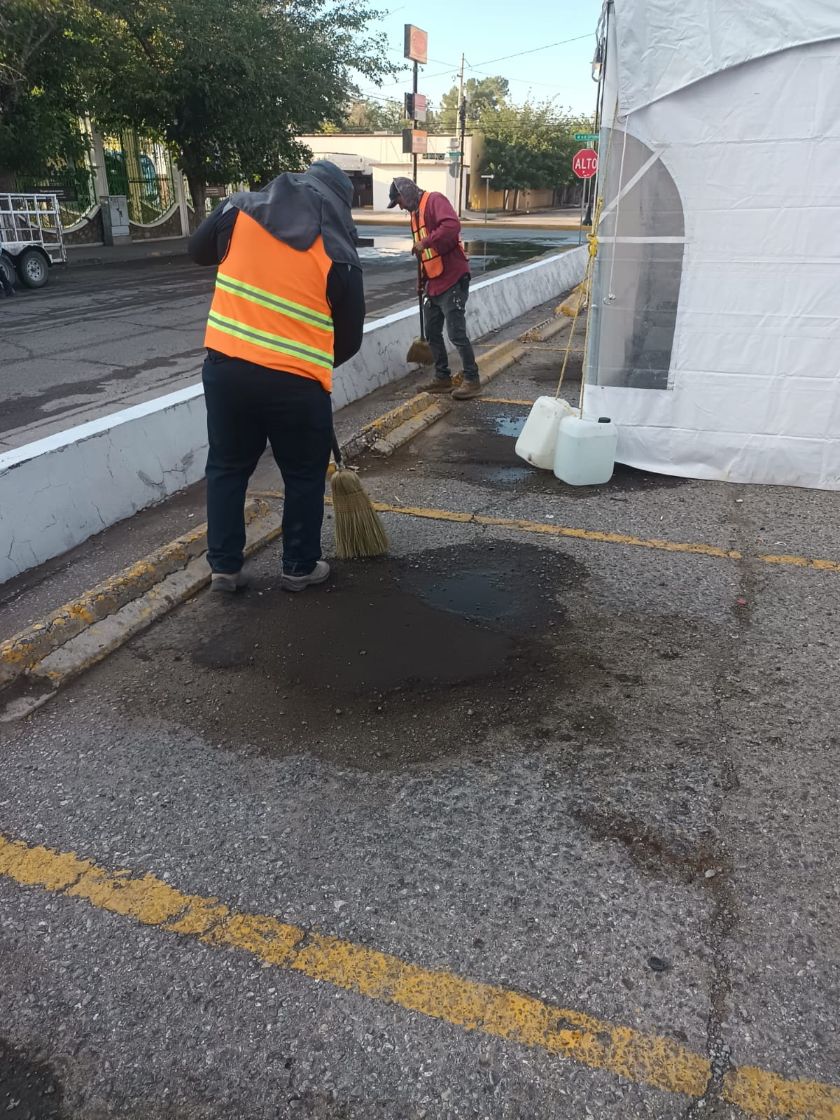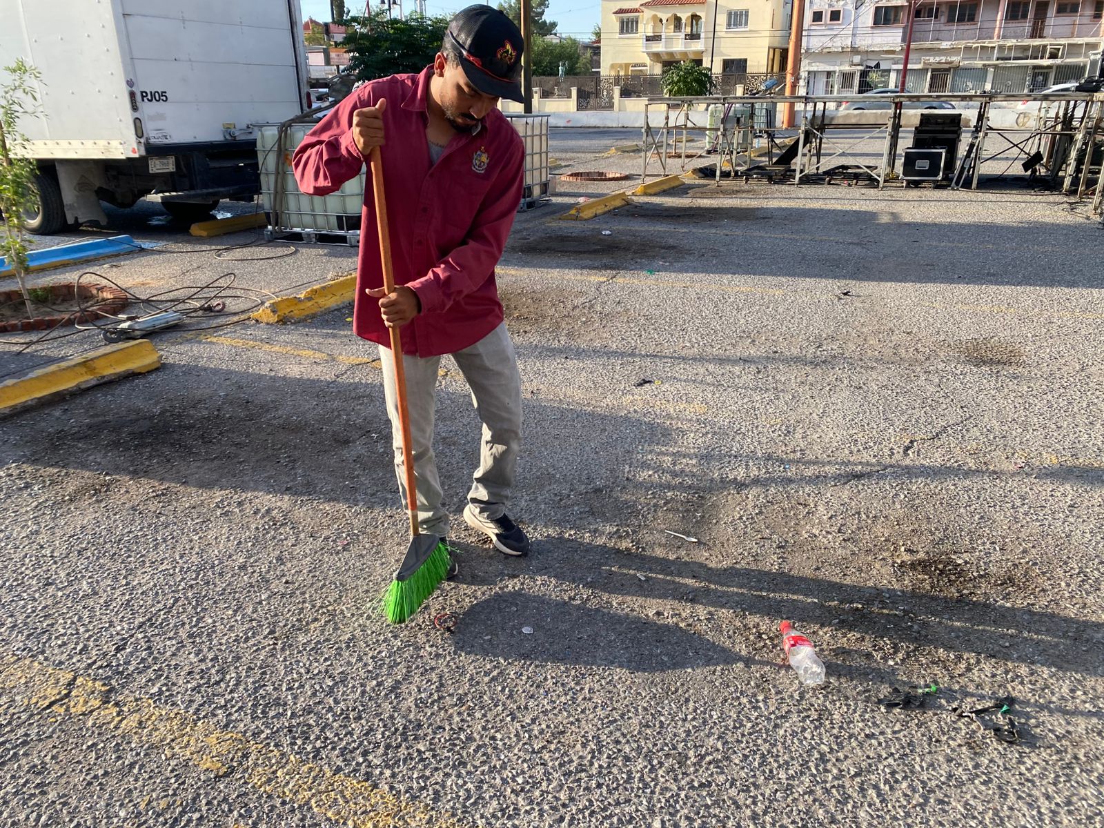 Ciudad Juárez, Chih.- Personal de la Dirección de Limpia realiza trabajos previos al arranque de la cuarta edición del Festival Juárez Juangabrielísimo.