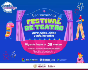 Chihuahua, Chih.- La Secretaría de Cultura del Gobierno del Estado de Chihuahua lanzó una convocatoria para integrar la programación del Festival de Teatro para Niñas, Niños y Adolescentes, a través del programa “Alas y Raíces” Chihuahua.